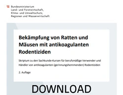 - Parallel zur Verordnung gibt es eine nationale Leitlinie („Leitlinie zu Rodentizidprodukten mit antikoagulanten Wirkstoffen“).